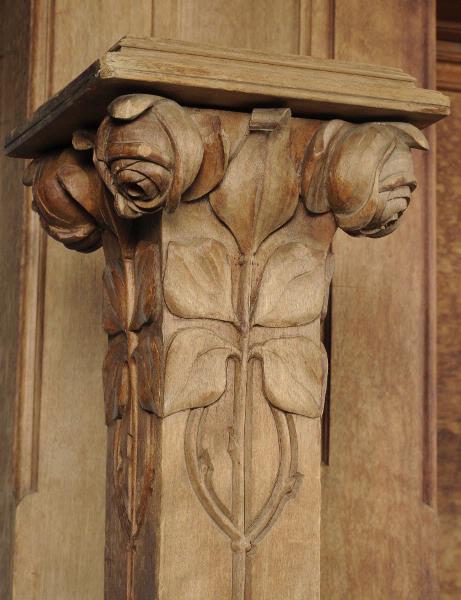 Skuren dekor med rosmönster. Vattenskadad. Flera lösa delar.