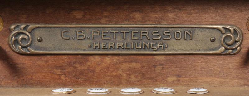 Orgel, jugend. Tillverkad av orgelbyggaren Carl Bernhard Pettersson i Herrljunga för domkyrkeskapellmästaren Preben Nodermann (1867-1930). Orgeln var placerad i hemmet Gullebo, Kävlingevägen, därefter Magle Lilla Kyrkogatan 14, kallat Bokebo. Hör samman med orgelpall KM 71458.