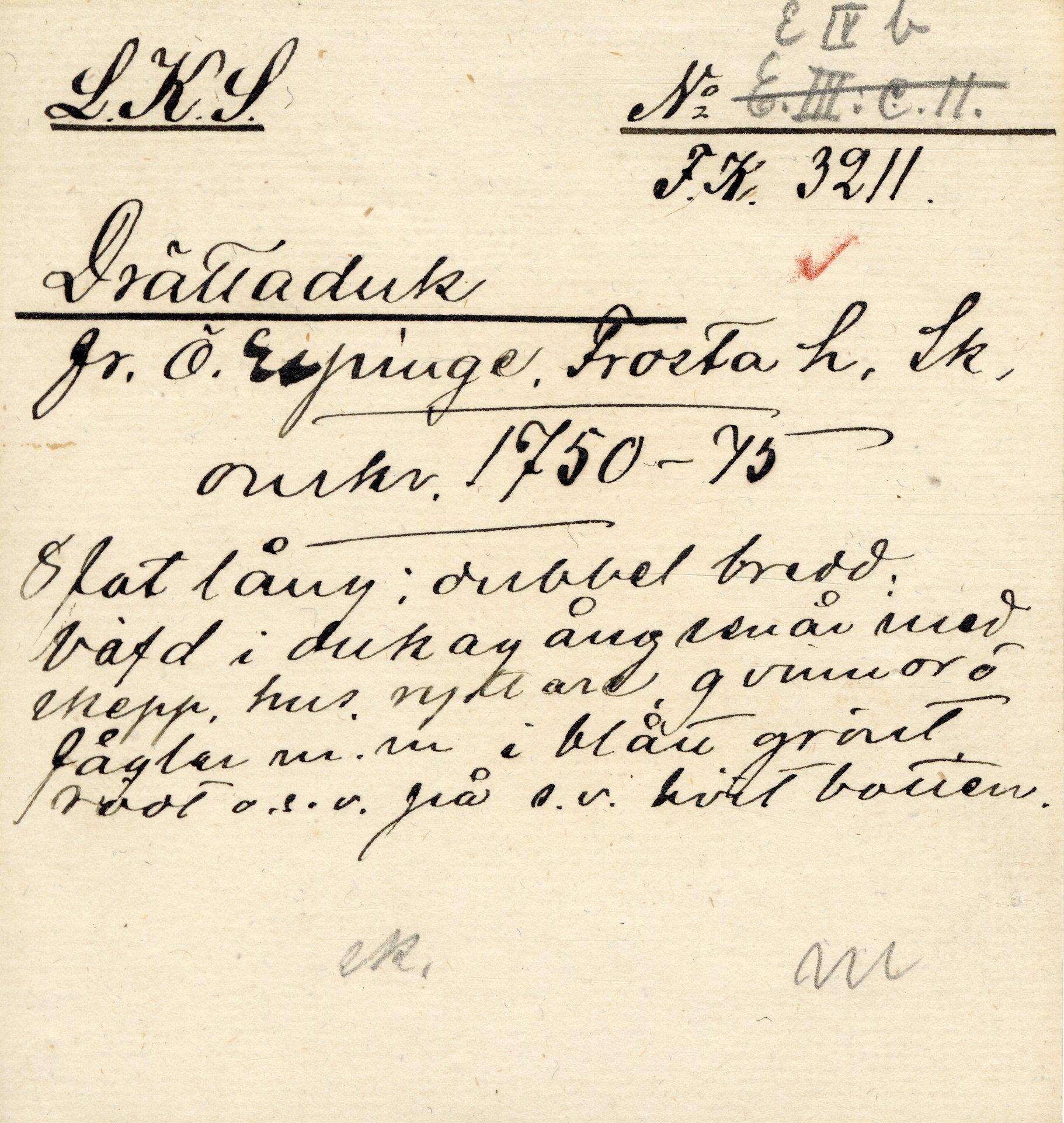 De ståtliga dukagångsdrättarna i östra Skåne har lockat många forskare men ännu har ingen löst gåtan om deras verkliga ursprung. De har använts vid livets eller årets högtider då de hängdes, eller "drogs" på väggarna som tapeter. Ofta är de 8-10 meter långa. De finns med i bouppteckningar från början av 1700-talet och vävdes ännu så sent som omkring 1850. Äldre dukagångsdrättar är bevarade på Island och i sydöstra Finland. Dukagång som vävteknik finns redan i Birkafynden på 800-900-talen.