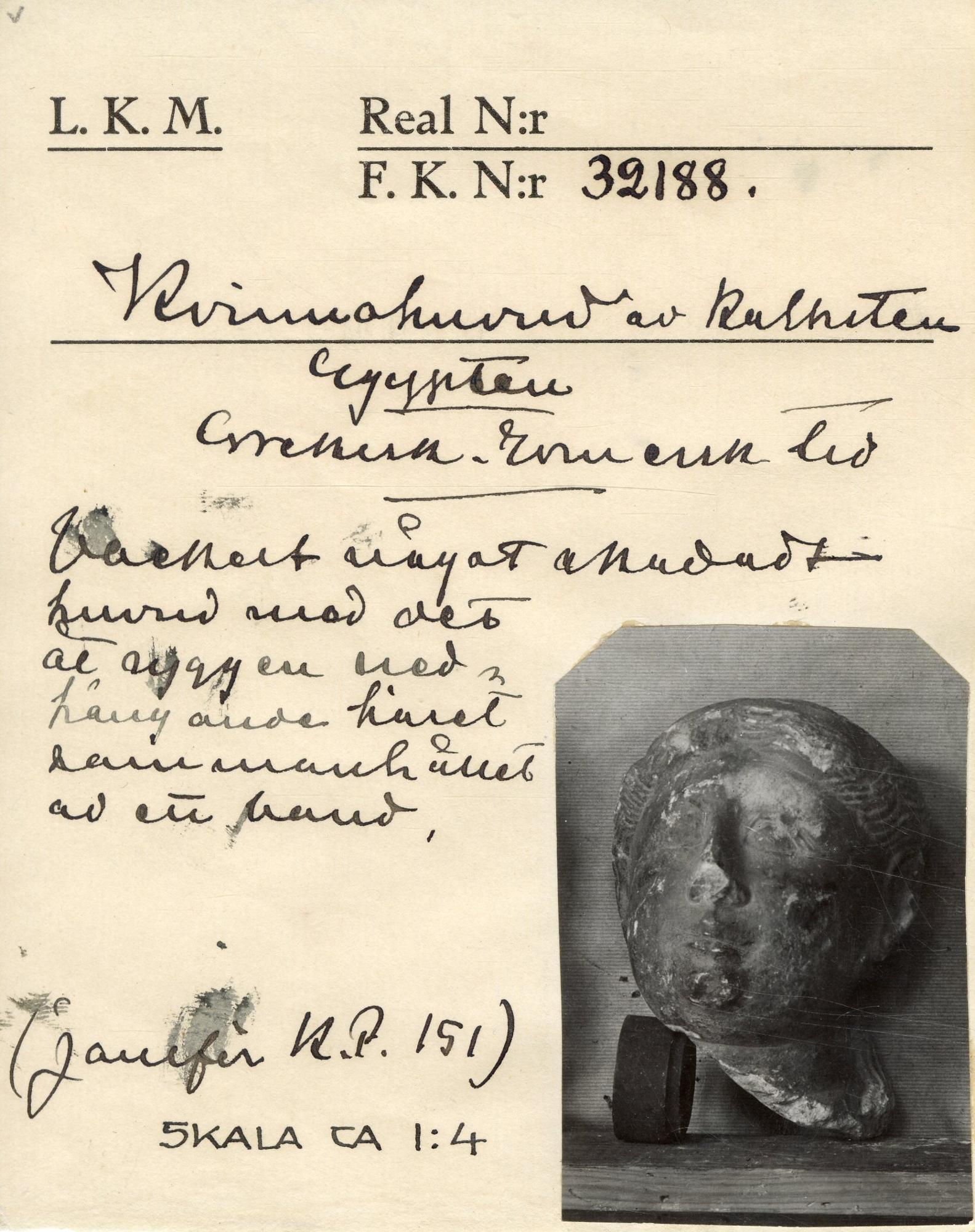 KM 32188 :: kvinnohuvud, skulptur