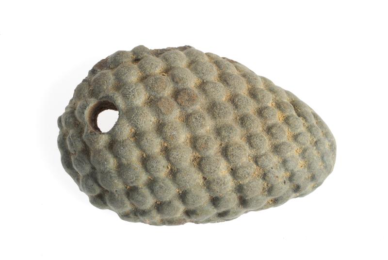 Grönglaserad druvklase på ytterst hård bränd massa. Okänd användning.