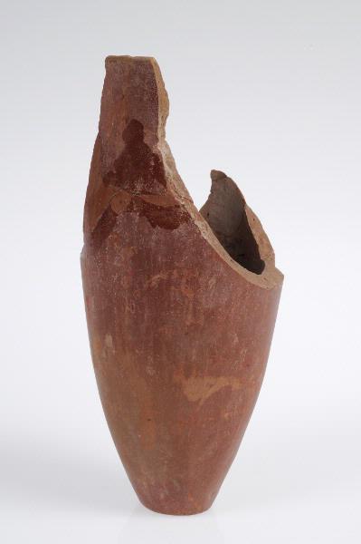 Spetsigt. Röd, tillverkad utan drejskiva.