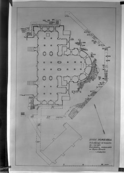 Lund. Lunds domkyrka. Undersökningar vid korpartiet okt-nov 1941. Översiktsplan sammanställd av Ragnar Blomqvist
