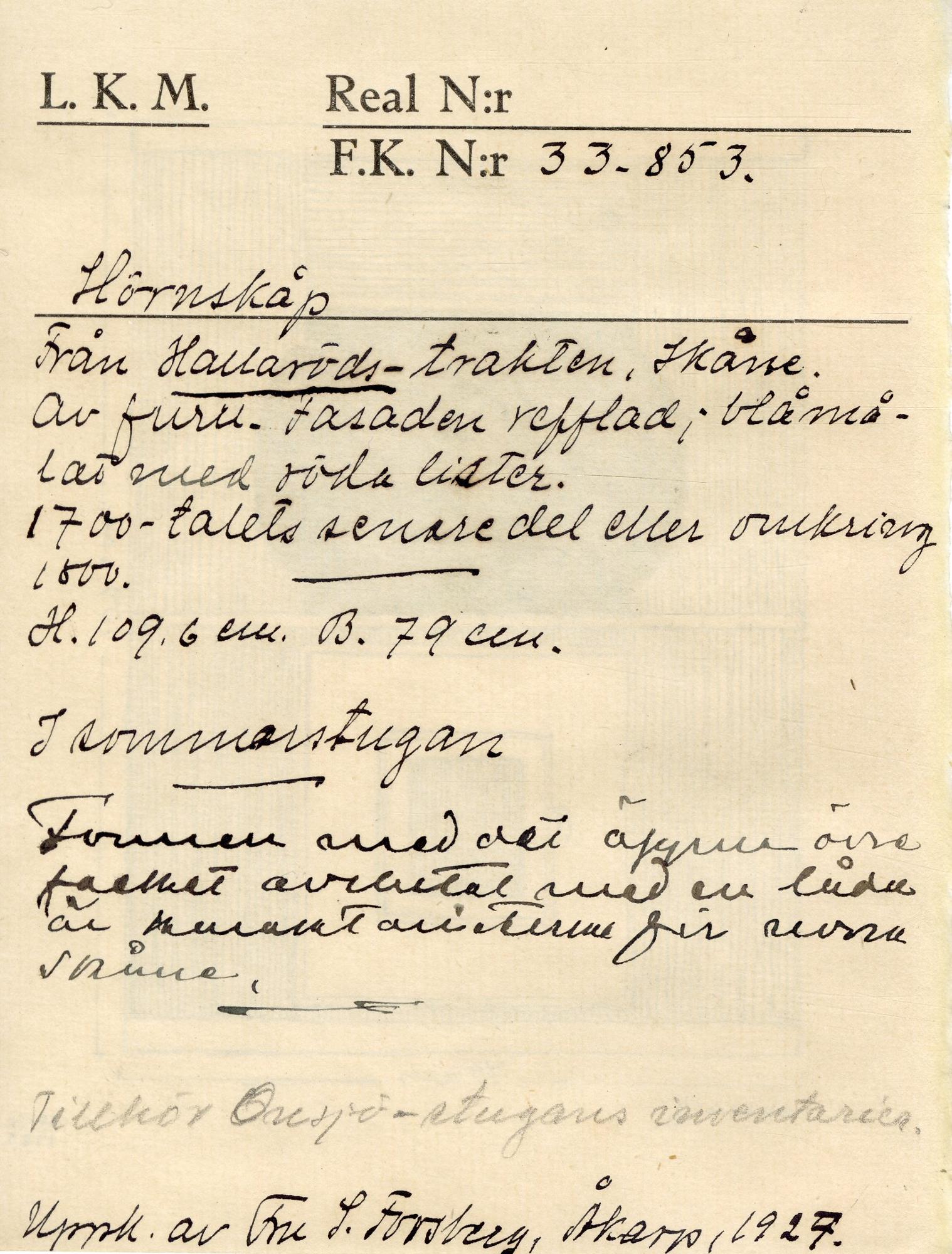 KM 33853 :: hörnskåp