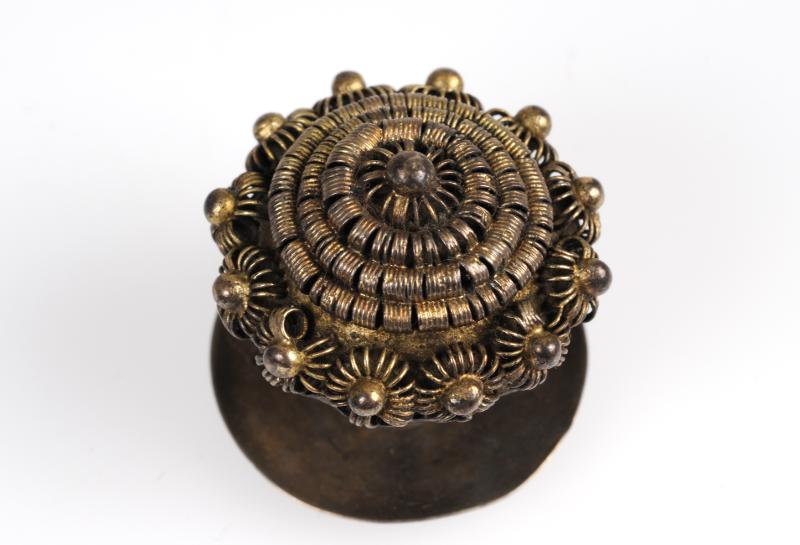 Toppig. Filigranspiraler och koncentriska cirklar.