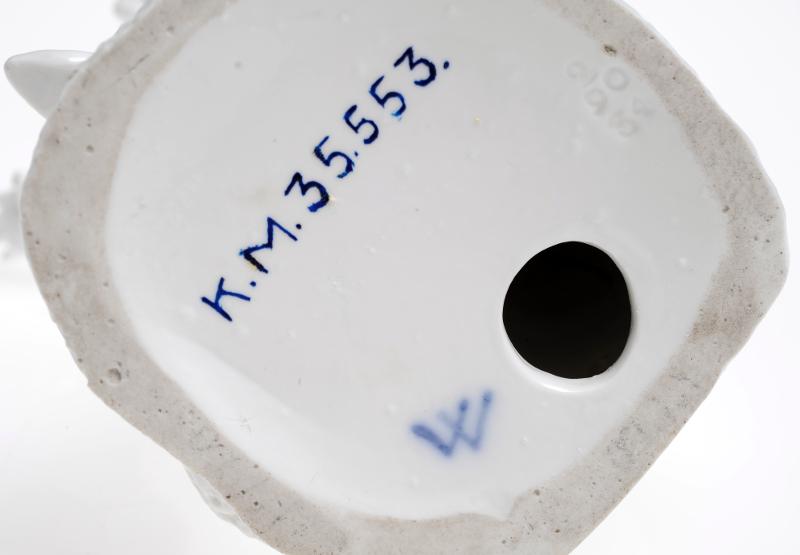 - Pumpmakare. Man som står framför en brunn med punp. Ur pumpen rinner vatten ner i ett laggkärl. Klädd i knäbyxa, knäppt rock, samt rundkullig hatt med brätte, i denna en stor fjäder. I ena haden håller mannen en klubba. Vit, omålad. Sockel med räfflad kant. Wegely perioden 1751-1757.
