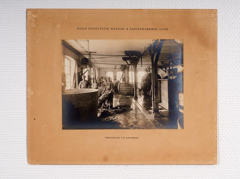 Interiör från garveriet vid Hugo Nordströms fabrik i Lund. Hudarna skrapas. Foto av Per Bagge.