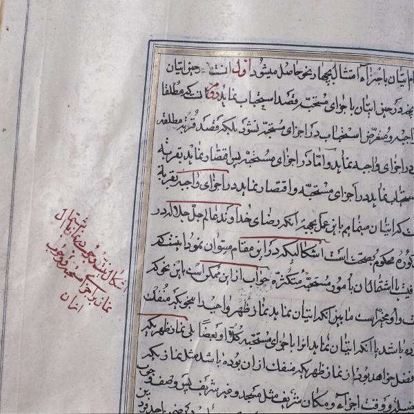 Volymne innehåller en 276-sidig handskrift i två delar, en större och en mindre, i vackert persiskt utförande.Verket saknar titel; det innehåller i löpande följd påstående och frågeställningar, som kommenteras på ett blandat arabiskt och persisktspråk. Anonymiteten behöver inte nödvändigt vara tillfällig; det kan ha varit fördelaktigt att låta skriften sakna ursprungsbeteckning. Första sidorn i de båda delarna är rikt dekorerade i flera färger, och de övriga textsidorna är vackert inramade i guld. Textens skönhetsintryck förhöjes ytterlgiare genom att nyckelorden skrivit med rött bläck. Med rött bläck har skrivaren dessutom dragit ett streck ovanför vissa ord, vilket motsvarar vårt sätt att stryka under. På vardera av de båda delarnas sista sidor finns en liten notis - av en andra hand - som intygar, att verket kollationerats.
