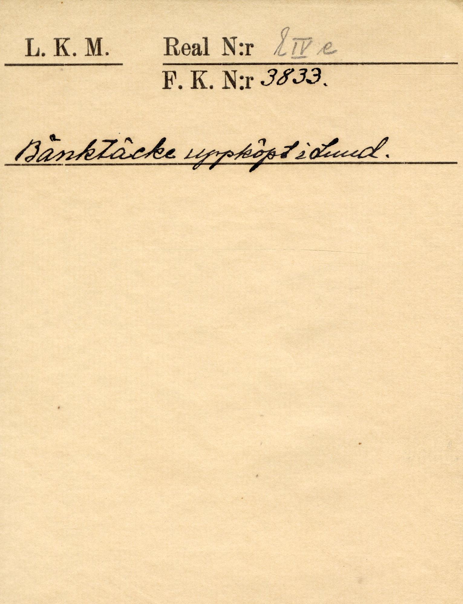 KM 3833 :: bänktäcke, längd, täcke