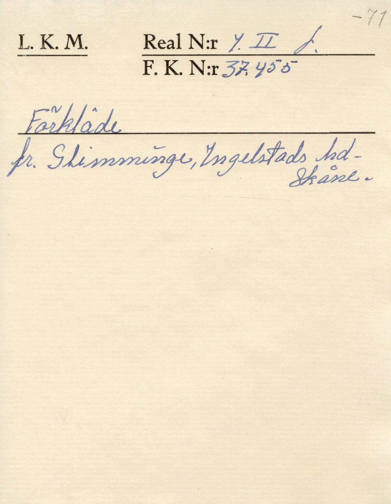 Hanna Ingvarsddotter hade förklädet med sig i hemgift till Öja, där hon gifte sig vid 26 års ålder (1853).
