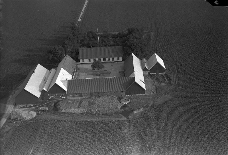 Flygbild. Bondgård i odlingslandskap. Norra Nöbbelöv, Lund.