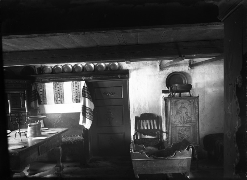 Östarp. "Gammalgården". Interiör av dagligstugan.