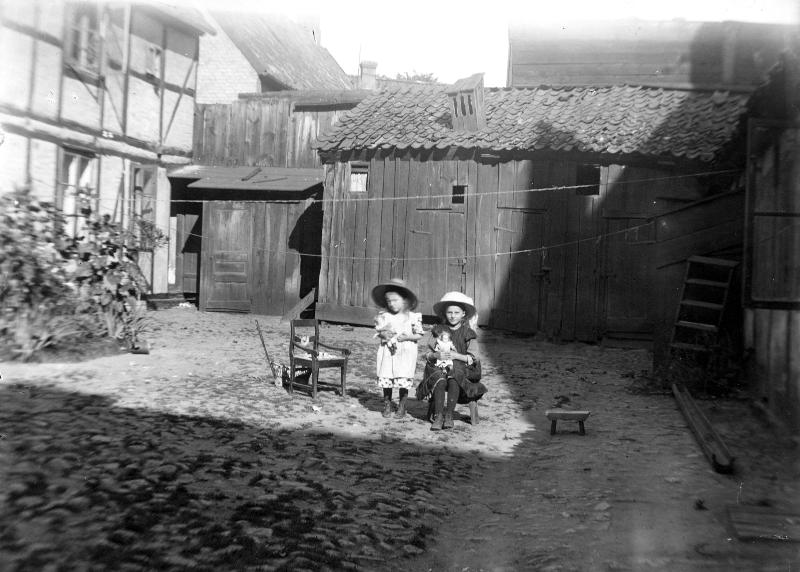 Lund. Oidentifierat foto, 2 flickor med varsin docka