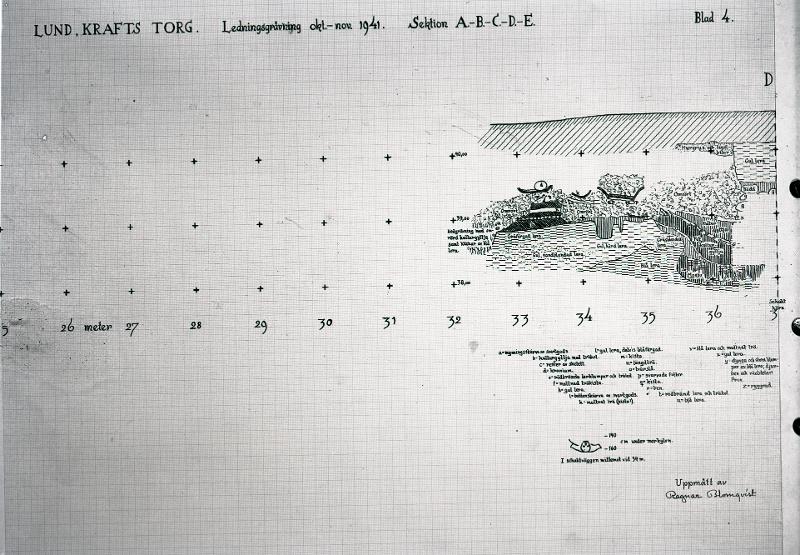 Lund. Krafts torg. Ledningsgrävning okt.-nov. 1941. Sektion A-B-C-D-E. Blad 4.