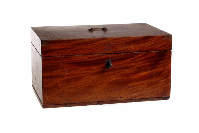 mahogny [fanér]; brons [handtag]