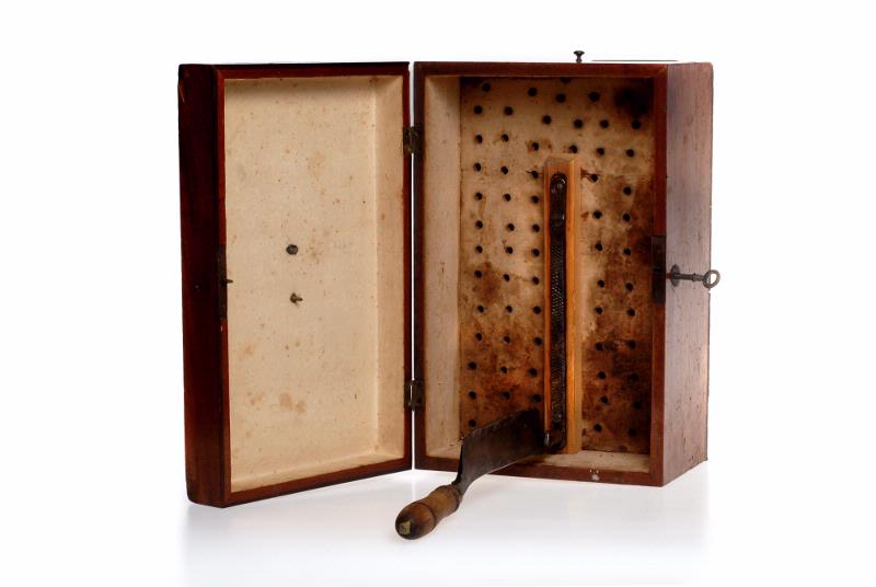 Med lås, inuti huggkniv och silbotten.