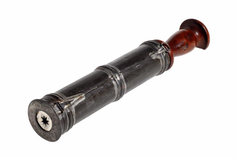 Svarvat handtag i ett fodral av järnbleck, varigenom degen pressades ut genom en stjärn- eller på annat sätt formad öppning i botten.