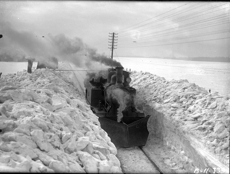 Grothéns bildsaml. Ånglok som plogar snö. Vintern 1941-42?