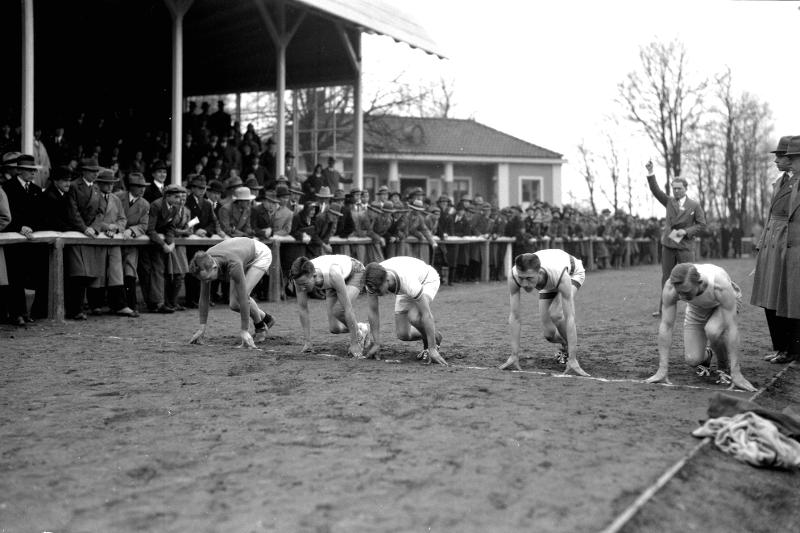 Grothéns bildsaml. Sista april-spelen. Start löpning herrar vid studenternas siste apriltävling.