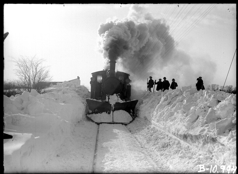 Grothéns bildsaml. Vintern och järnvägen. Ånglok med snöplog.