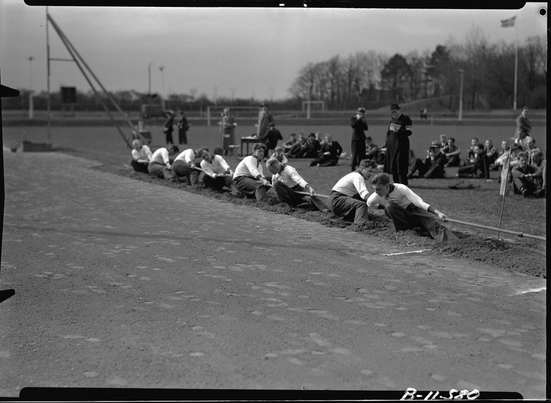 Grothéns bildsaml. Dragkampstävling 1938. Studenternas siste april tävling.