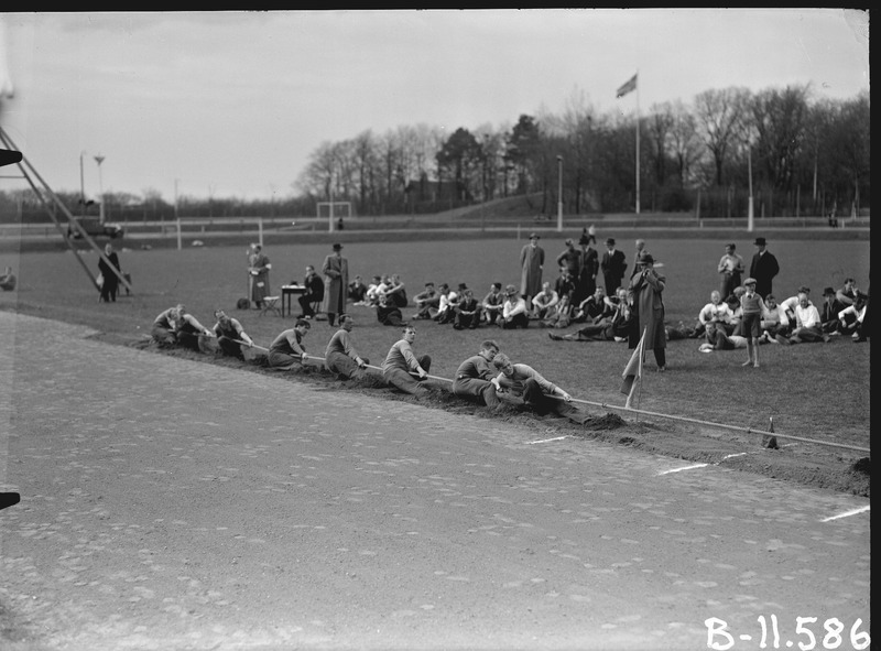 Grothéns bildsaml. Dragkampstävling 1938. Studenternas siste april tävling.