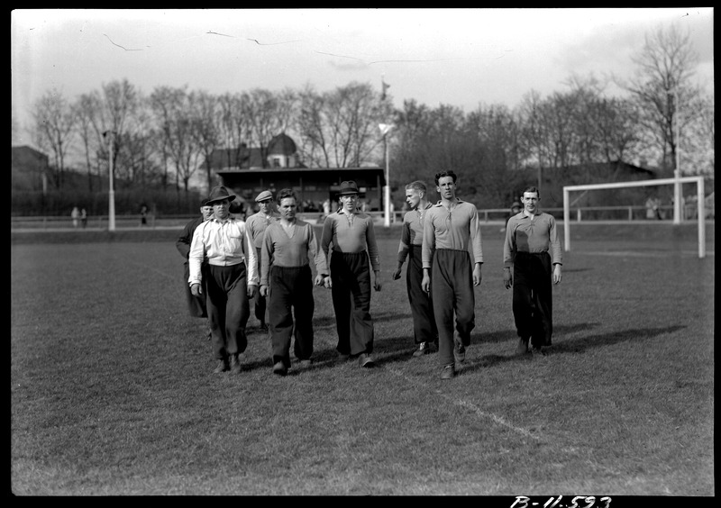 Grothéns bildsaml. Dragkampstävling. Lag på väg till tävlingen. Studenternas siste april tävling.