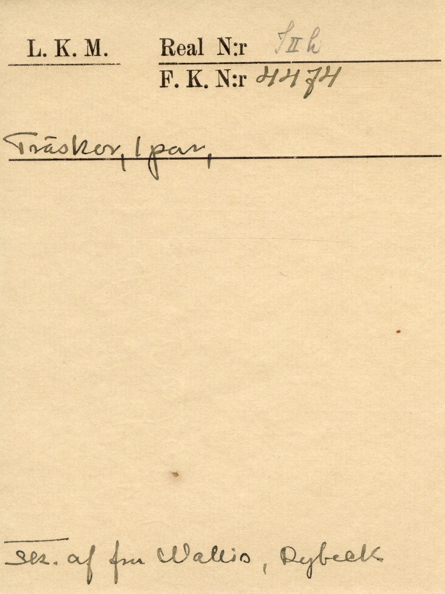 Svartmålade, med ett plåtband tvärs över vristen. Dubbel klack.