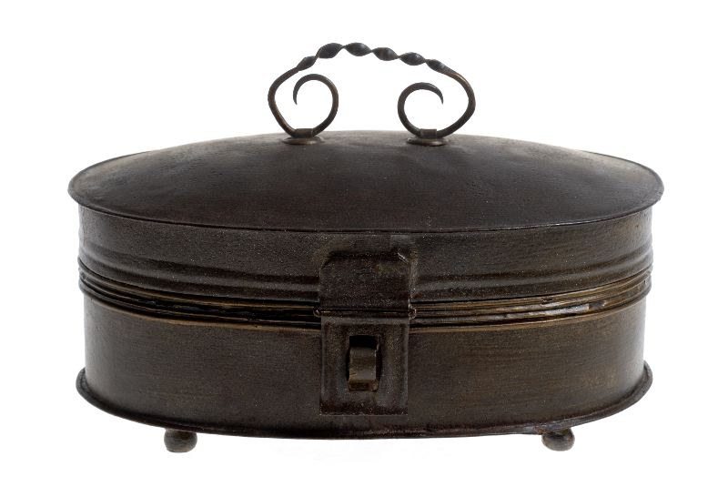 Ovalt, med kupat lock. Inrett med ett runt rum i mitten och däromkring sex radierande rum.