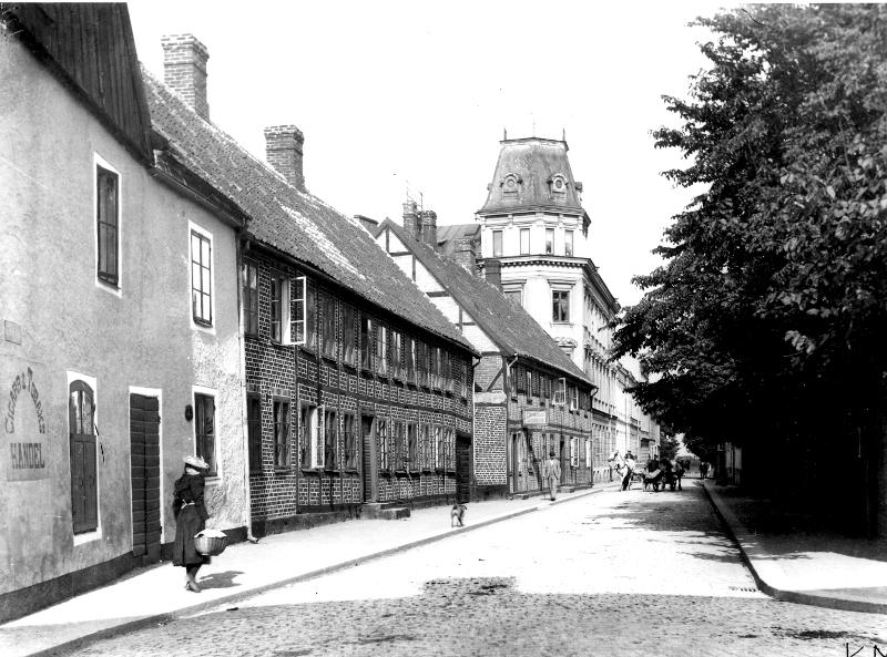 Lund. Doktor Ficks bildsamling. S:t Peders Kyrkogatan, sedd fr. hörnet vid Bredgatan (omkring 1900). Sankt Petri Kyrkogata, omkring 1900. Studentkasernerna, glädjen och lyktan