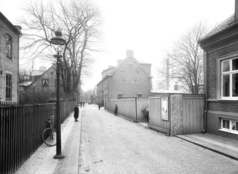 Lund. Kv Magle St Kyrkogata. Fr Ö. BN:s g:a neg nr:253. Magle stora kyrkogata från öster, januari 1935.