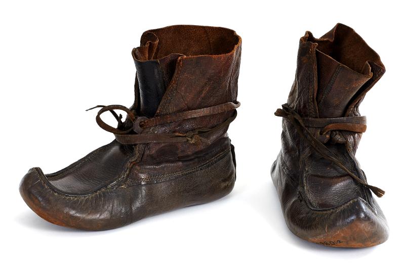 A-S Svakko 2018: Maskinsytt skaft. På vissa platser tillverkade samer skor åt ickesamer och bytte till sig andra varor.
