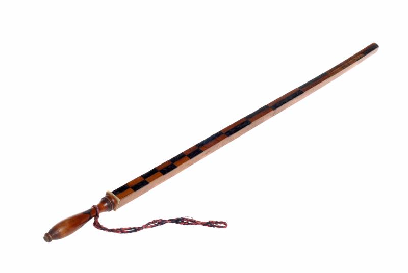 Med inläggningar och svarvat handtag.
