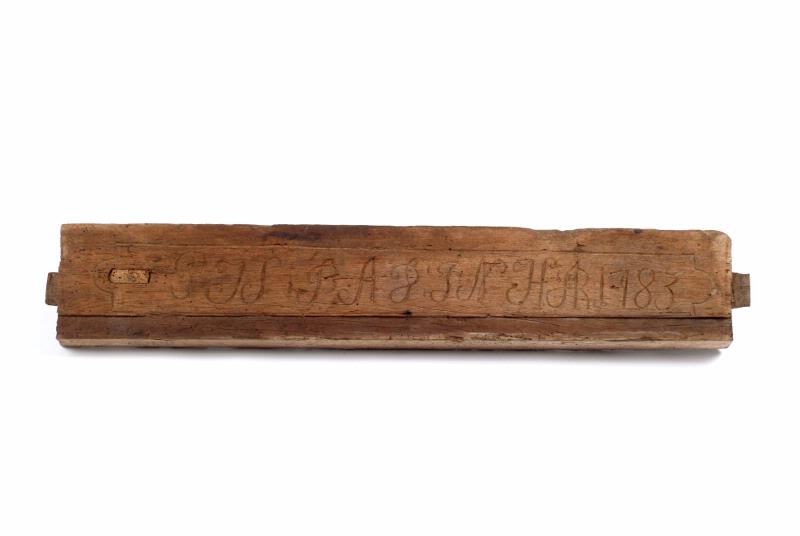 Med nedskuren inskription: PTS BAD JN H AB 1783 (=Pehr Johnsson och hans första hustru Bengta Andersdotter, födda, 1749 och 1761 och döda 1818 och 1789.