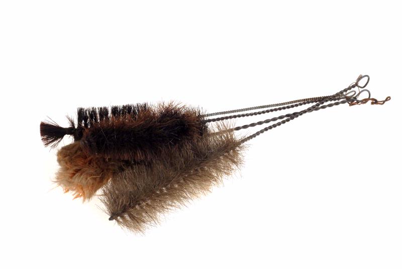 Av svart och brun tagel, cylinderformade; med vridet ståltrådsskaft.