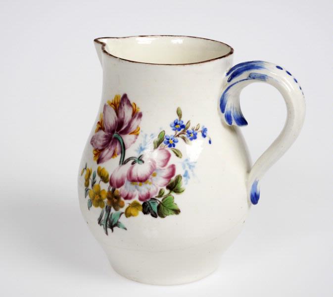 Mjukt porslin. Polykrom blomsterdekor över glasyren.