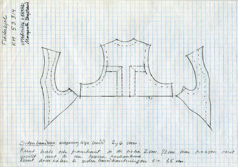 Livet. Fodrets axelsömmar är hopsydda före det att fodret satts i. I sidorna finns kilar liksom på livets tyg. Livets axelsömmar är sydda från rätsidan med efterstygn "prickstygn", med bakstyckets kanter lagda över framstycket. "Kilarna" i sidorna är sydda från rätsidan, med bakstycket lagt över framstycket.