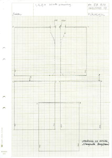 - Livet kort i brun-grön-grå glättad ylledamast med gröna sidenkanter. Linnefoder. Kjolen öppen, av svart yllesatin, rynkad och helplisserad. Linneskoning i kanterna, hörnen nedtill skodda med grön vadmal. Kjolen sydd av 5 våder; 75, 77, 76, 77 samt 47 cm breda.