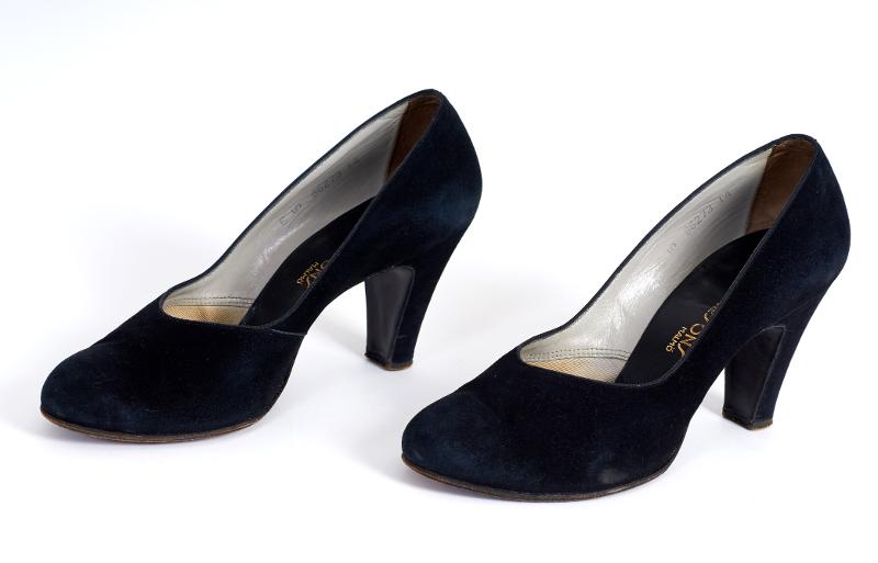 Svarta. Hög klack. Text på innersula: Made expressly (especially?) for Ohlssons, Malmö. Pliggad stigtlapp. Mått: klack H 8 cm, Br 2 cm.