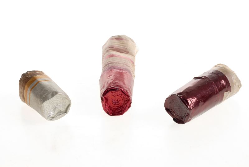 För vinflaskor. Tre olika sorter, aktuella 1963. Aktiebolaget Vin- och Spritcentralen inpressat på kapsylernas tak.