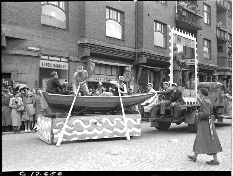 karneval; parad; studentliv; stad; lastbil; roddbåt