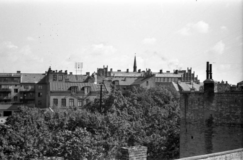 Lund. Utsikter över kvarteren S:t Måns och Billegården, tagna från 3:dje våningen på det nybyggda huset kvart. Billegården n:r 28.