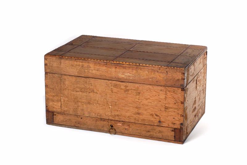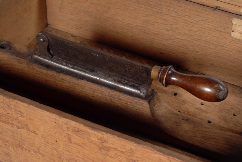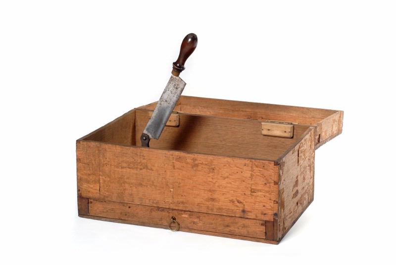 Rektangulär, med skäranordning och utdragslåda.