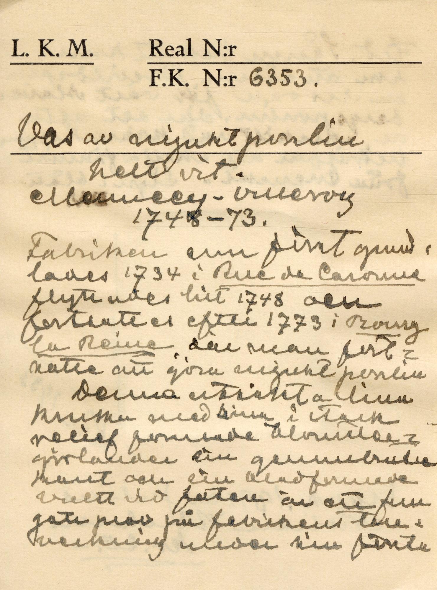 I blått under glasyr D.V. [duc de Villeroy] [avritat på katalogkort].