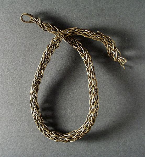Halskedja av flätade, förgyllda bronstrådar.