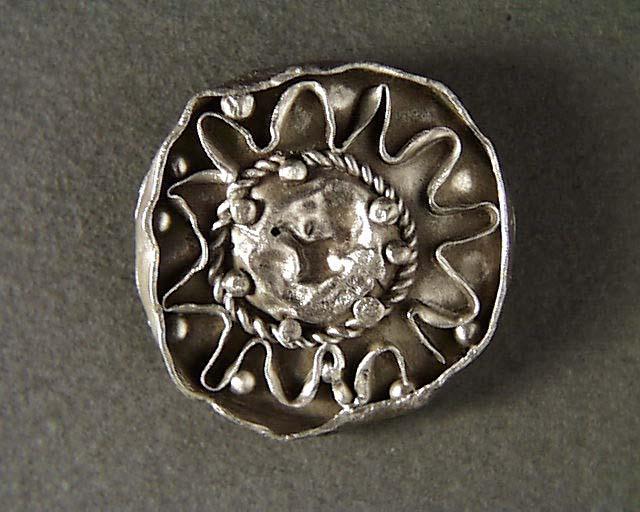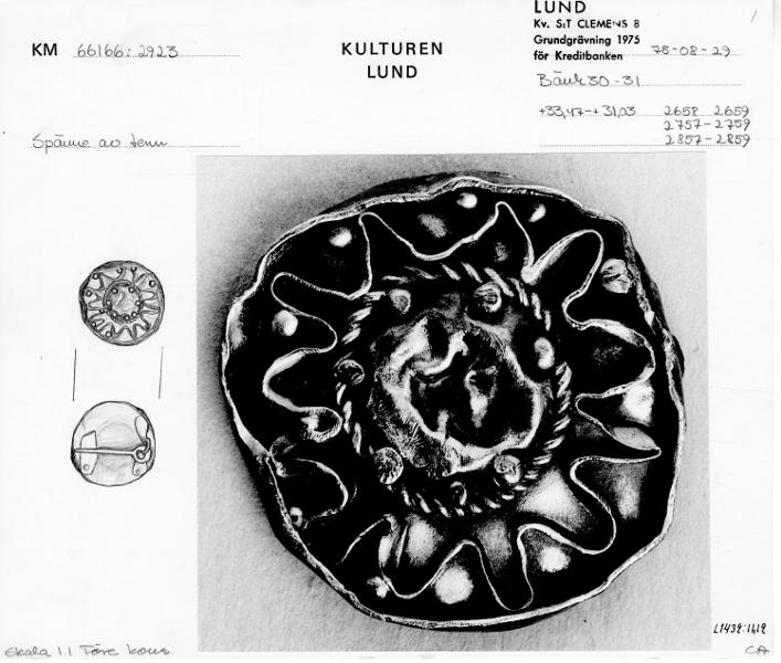 Spänne med pålagda dekortrådar. Troligen är det ett verkstadsfynd avsett att kompletteras med emailjinläggningar.