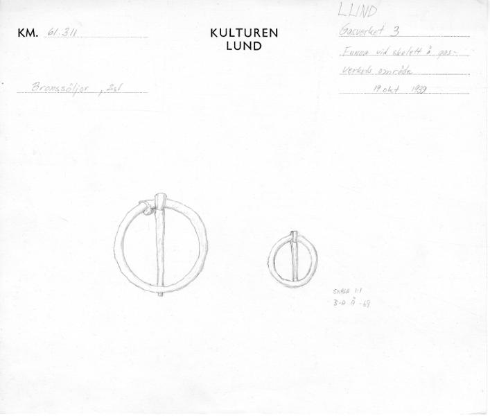 Funnet 1939 vid skelett på gasverkets område (troligen kv. Gasverket 3).