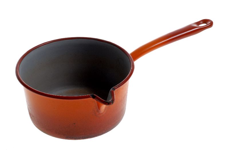 Orange, med spetsig snås. Plåtskaft med hål för upphängning.