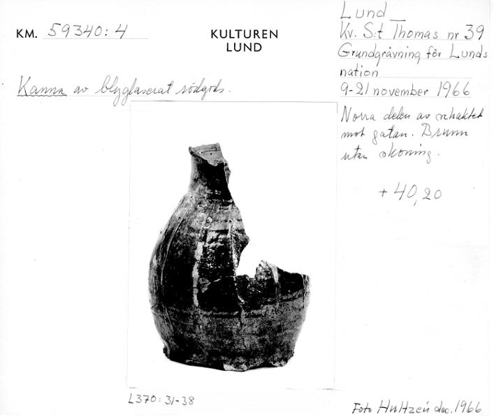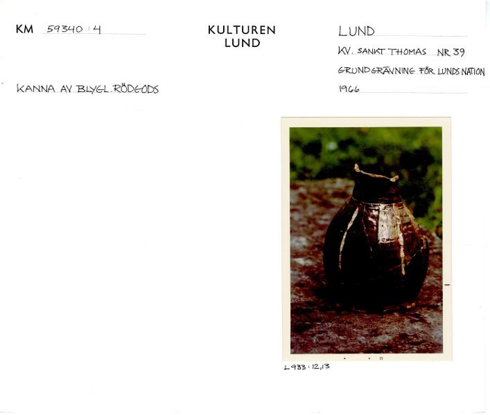 "Blyglaserade rödgodskannor från Sjælland och Skåne [KM 21173]. 1200-talet till 1300-talets mitt."