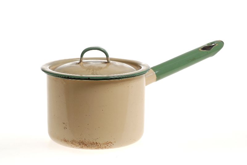 Med lock, gul med gröna kanter och handtag, märkt "Kockums".